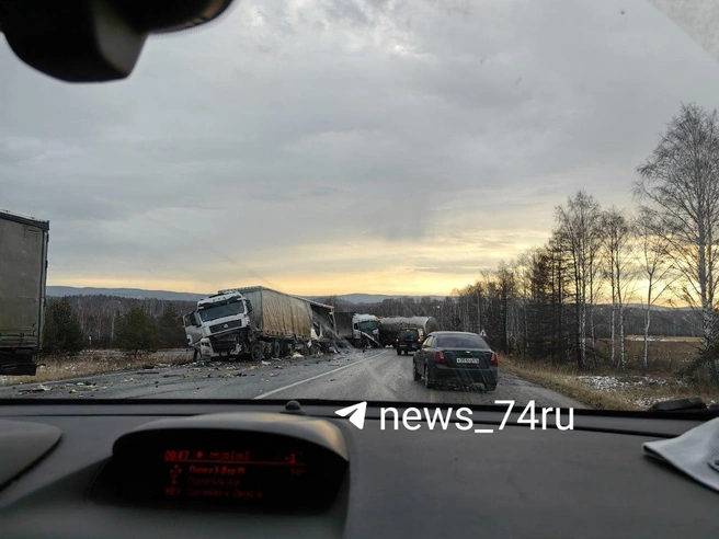 Массовая авария с большегрузами вызвала крупный затор на трассе М5 утром пятницы, 14 ноября. По словам очевидцев, инцидент случился в районе города Миасс Челябинской области.